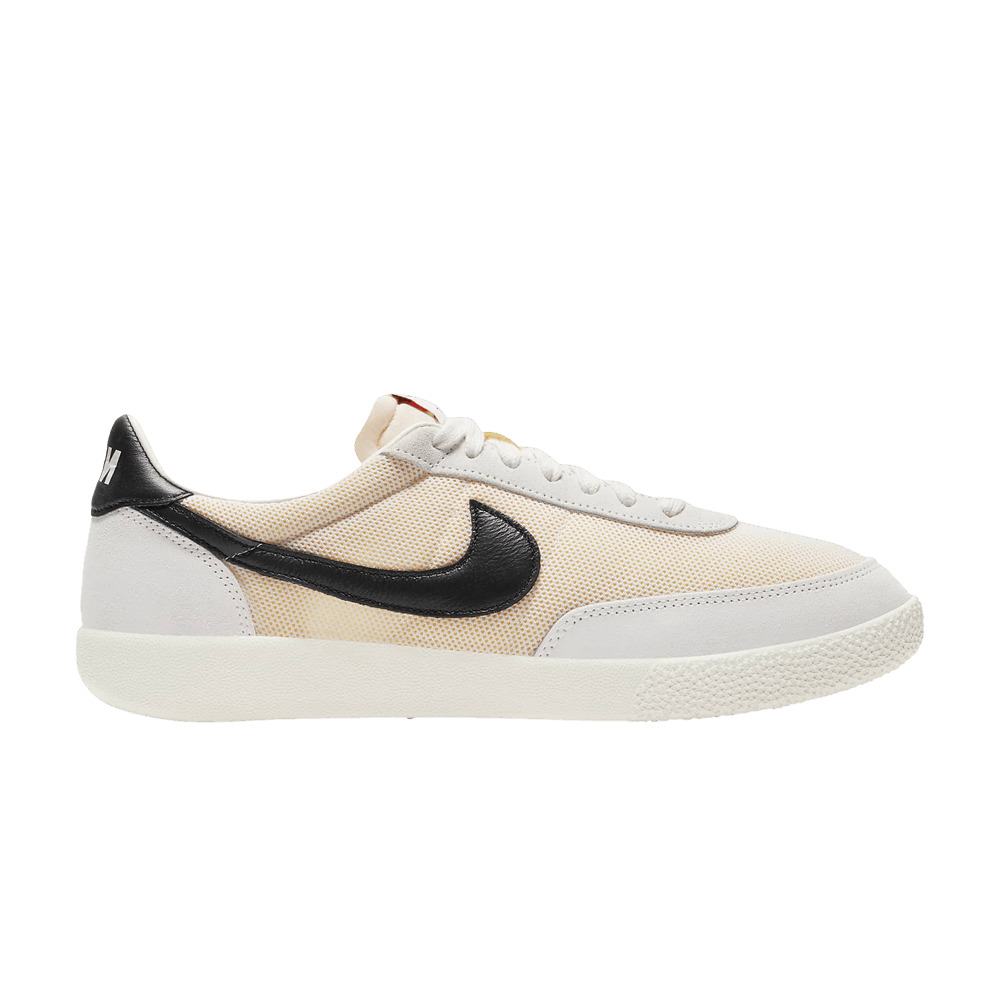 The Nike Killshot OG ‘Team Orange Black’ features a lightweight, airy build that replicates the look of the original performance tennis shoe from 1979. A subtle orange finish is executed on a breathable mesh upper, reinforced with off-white suede overlays at the toe and heel. The low-top is accented with a retro black leather Swoosh and a matching Nike-branded heel tab. A vintage exposed-foam tongue works in tandem with a padded collar to deliver a comfortable fit. UPPER MATERIAL Mesh