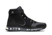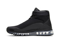 Dior Men's artistic director Kim Jones collaborated with NikeLab on the Air Max 360 High, revamping the look with a high-top construction, an all-black upper, and dual layered swoosh with 3M accents. This sneaker also features an asymmetrical lacing system and transparent 360-degree Air Max bubble used as a midsole, while the ankle strap is inspired by the Nike Vandal’s nylon fastening system. Kim Jones branding appears on the ankle strap, midsole and insole.