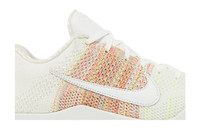 Released in March 2016, the Nike Kobe 11 Elite Low 'White Horse' features a white upper with multi-colored Flyknit strands, white Swoosh, and a white sole.
