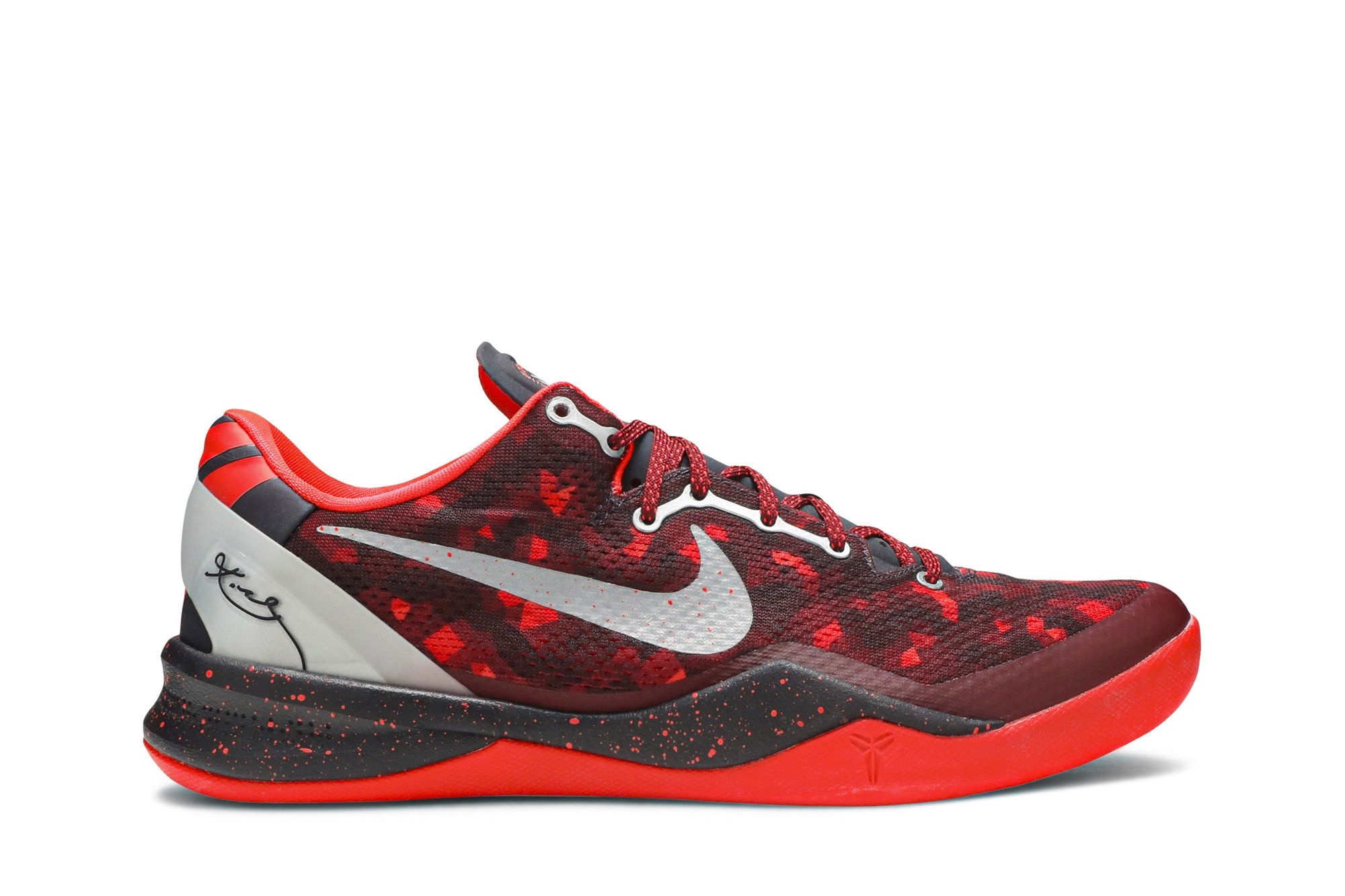 The ‘Year of the Snake’ edition of the Nike Kobe 8 pairs up colors of Port Wine and Team Red. The lightest of any in the Kobe lineup, they feature a low profile with a full-length Lunarlon midsole. Identifying markers include a camo-like print upper as well as Pure Platinum Swooshes, eyelets, and heel counter donning Bryant’s signature in black. UPPER MATERIAL Mesh