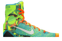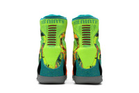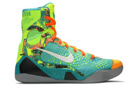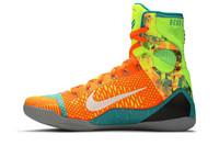 The Kobe 9 Elite ‘Influence’ covers its towering silhouette in a blend of vibrant hues across its Flyknit upper. The collar is dominated by Volt, with the midfoot appearing in teal and the toe in bright orange. Additional pops of orange are seen on the laces and Nike Flywire cables, integrated together to deliver an adaptive fit, while Lunarlon foam provides lightweight cushioning on the contrasting grey midsole. Carbon fiber inserts are included for stability. UPPER MATERIAL Flyknit