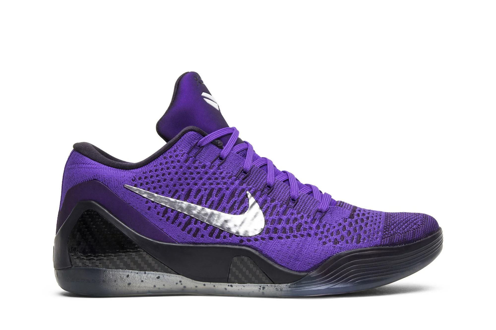 The Nike Kobe 9 Elite Low appears with a Flyknit upper construction in a ‘Hyper Grape’ colorway to pay homage to the King of Pop. The translucent outsole is stamped with a moonrock graphic to reference Michael Jackson’s infamous Moonwalk performance. A carbon fiber midsole matches the tone of the black accents on the laces and sock-liner, while the silver Swoosh on the quarter-panel provides additional contrast. UPPER MATERIAL Flyknit