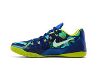 The Nike Kobe 9 implements an Engineered Mesh application throughout the upper that showcases a festive print. Inspired by the 2014 World Cup in Brazil, the look includes a mix of Game Royal and Venom Green. The Flywire cables on the eyelets help create a locked-down fit, while the midsole is packed with Lunarlon cushioning technology. UPPER MATERIAL Mesh