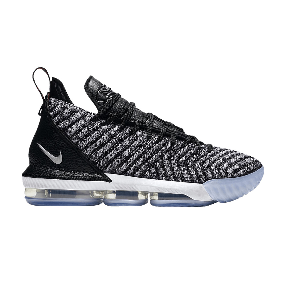 Nike gave the LeBron 16 the ‘Oreo’ treatment in September 2018. Rendered in a black and white blend, the shoe’s Battleknit 2.0 upper is complemented by a tumbled leather tongue and heel overlay over a white midsole and icy translucent outsole. Other signature details include a metallic silver Swoosh, red accents at the heel tab, as well as the initials of James’ children and the area code of his home city of Akron embroidered on the left and right heels, respectively. UPPER MATERIAL Battleknit