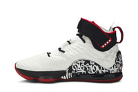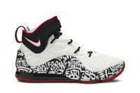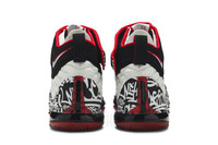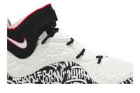 The Nike LeBron 17 ‘LeBron 4 Graffiti’ replicates the look of the coveted colorway that originally launched in 2006 through a New York City pop-up. The original shoe’s graffiti-style print is plastered across the mudguard, allowing the overlay to stand out against the white knit upper. Up top, a black adjustable strap wraps around the collar, featuring Nike Swoosh branding on the lateral ankle. A red translucent rubber outsole provides durable grip underfoot. UPPER MATERIAL Knitposite