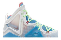 The Nike LeBron 19 ‘Tropical’ brings color-popped accents to LeBron James’ signature shoe, featuring a locked-in fit and hybrid cushioning. The white semi-translucent textile upper is supported with red Flywire cables and blue TPU wings, integrated into neon green laces for a feeling of midfoot lockdown. The sneaker is mounted on a blue Cushlon midsole, fitted with a responsive Zoom Air unit in the forefoot and a shock-absorbing Max Air bag in the heel.