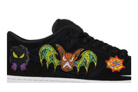 The Neckface x Nike Dunk Low Pro SB ‘Black’ reunites the Swoosh with the LA-based graffiti artist. His macabre designs appear on a series of unique patches that cover the black suede upper. Mismatched tongue tags display ‘Neck SB’ and ‘Face SB’ branding, while embroidered mini-Swooshes adorn the collar and forefoot of the left and right shoe, respectively. The sneaker rests on a white rubber midsole, featuring a wraparound ‘Shockers’ graphic on the left shoe. UPPER MATERIAL Suede