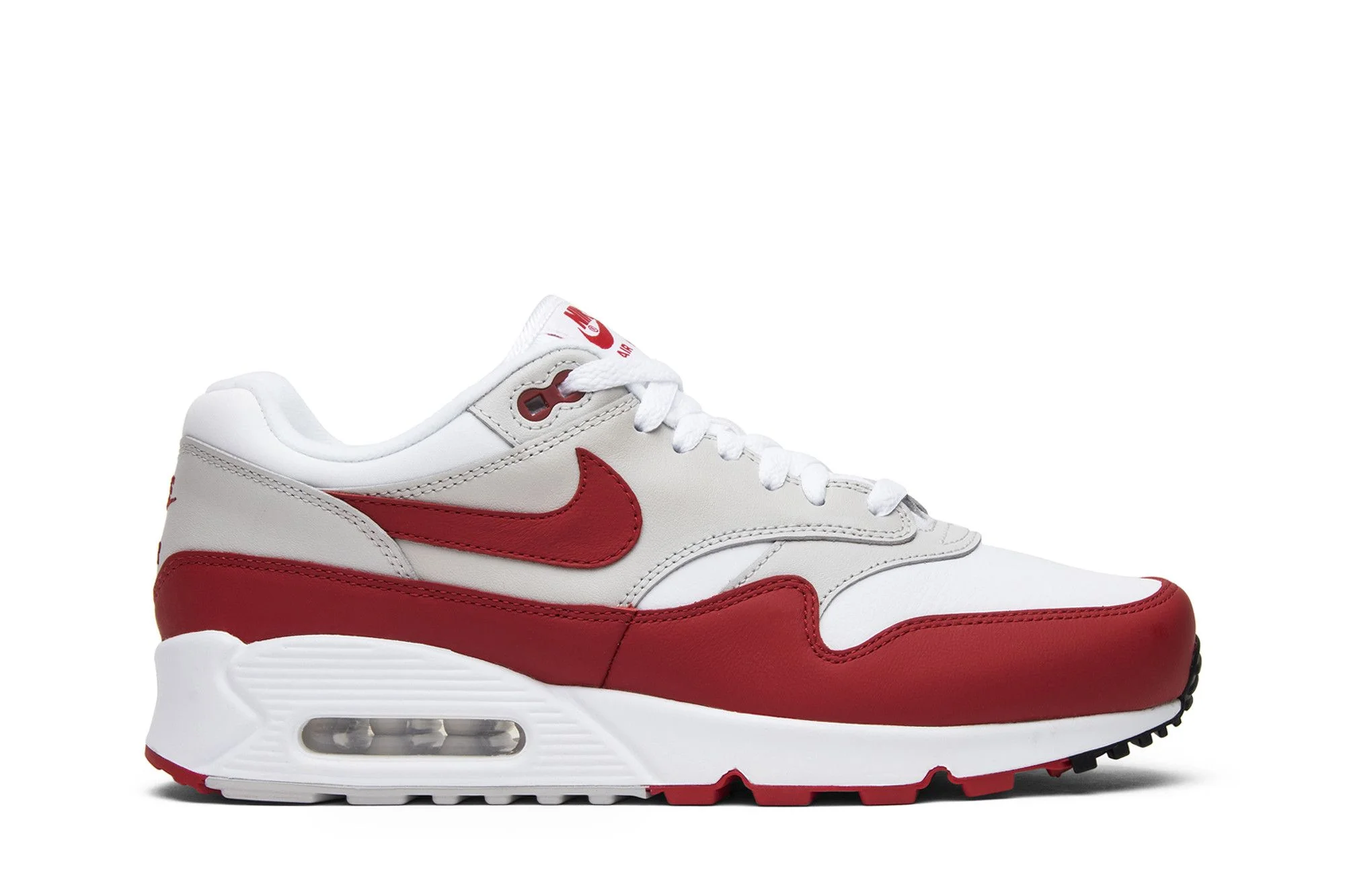 The Nike Air Max 90/1 ‘University Red’ pays homage to both the Air Max 1 and Air Max 90 silhouettes, featuring the iconic University Red and white color palette. The upper resembles the makeup of the Air Max 1, utilizing a primarily leather construction, while the midsole incorporates the tooling of the Air Max 90 to round out the hybrid look.
