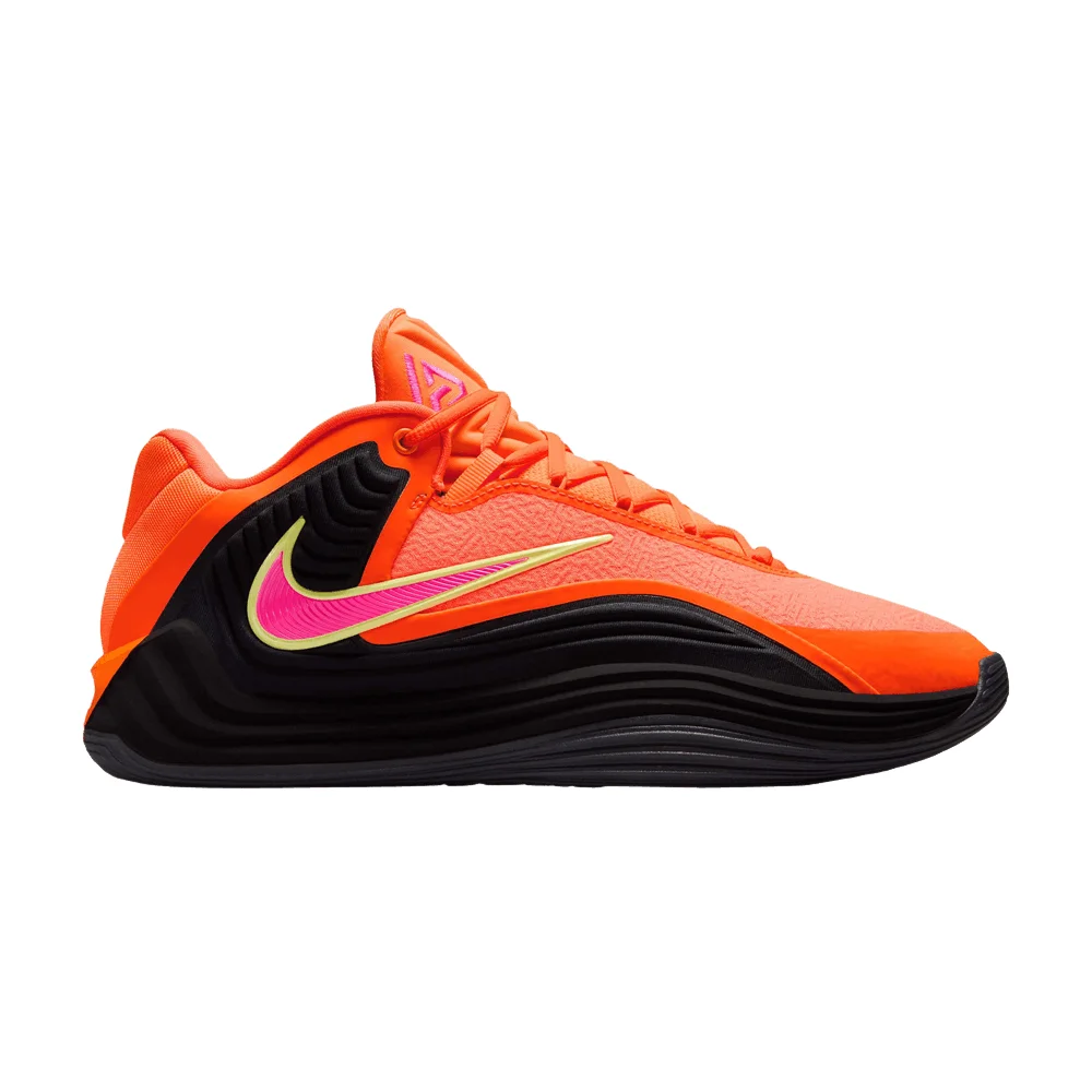 The Nike Giannis Freak 7 'Ignition' presents the launch colorway of Giannis Antetokounmpo's seventh signature shoe, featuring a textile and mesh upper in Total Orange. Outlined in Light Lemon, an inverted Swoosh in Hyper Pink adorns the lateral side panel. A heel overlay in black extends into the midfoot and gives way to a lightweight Cushlon 3.0 midsole. Underfoot, the durable two-tone rubber outsole utilizes a zonally engineered traction pattern that incorporates Giannis' surname. UPPER MATERIAL Textile