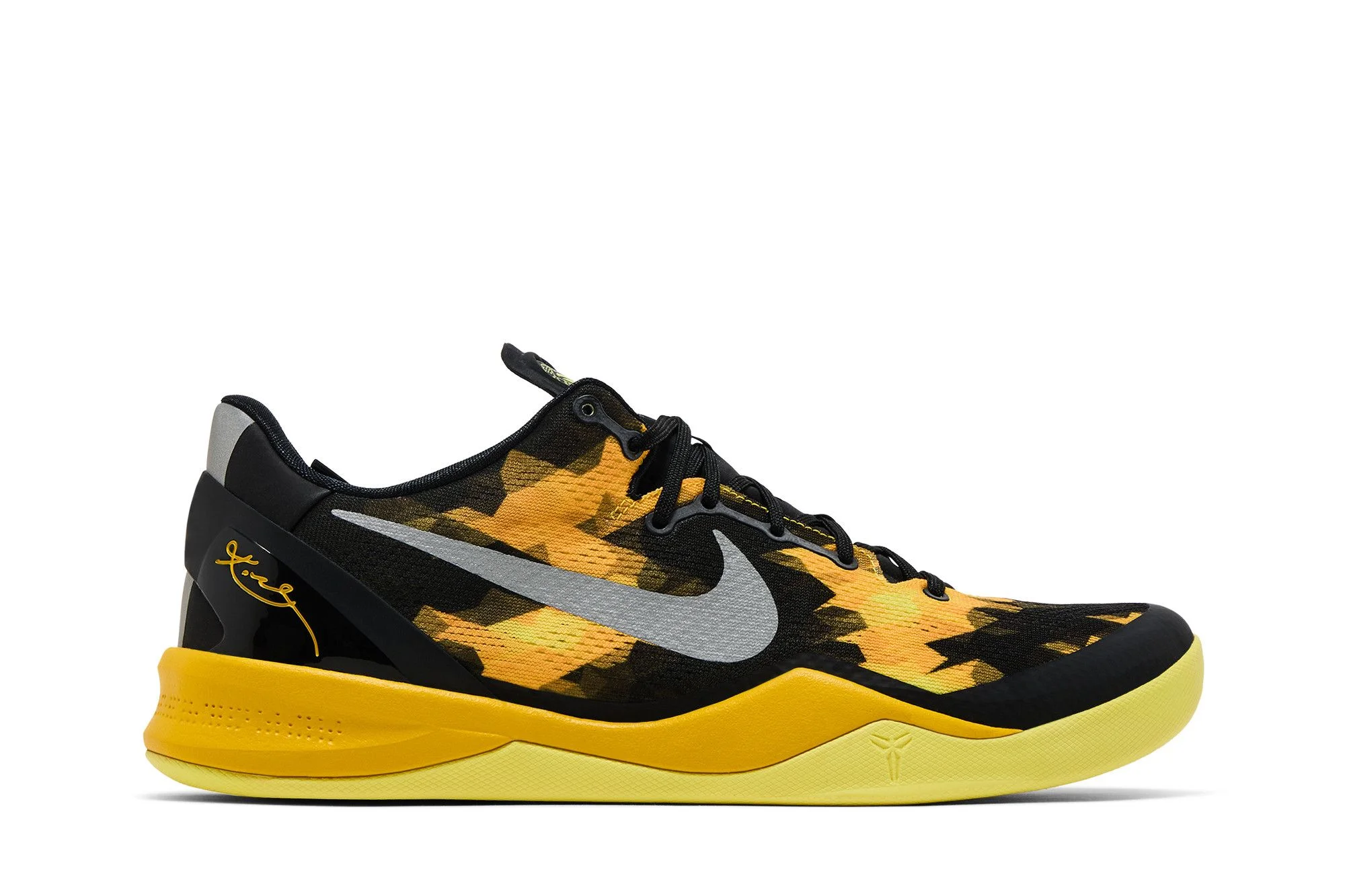 This Nike Kobe 8, originally released in December 2012, features a snake-inspired pattern on its Engineered Mesh upper. The lightweight, breathable material is complemented by a 3D anatomical heel counter and a full-length Lunarlon midsole, which houses a glass composite foot shank for midfoot support. The web rubber outsole, measuring just one millimeter thick for reduced weight, delivers traction underfoot. UPPER MATERIAL Mesh