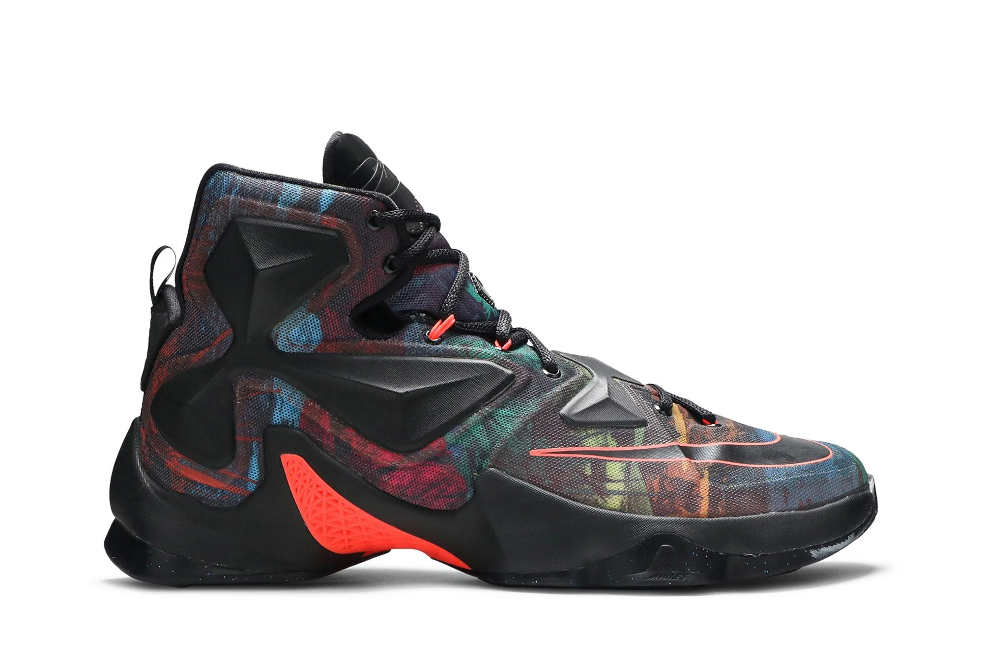 The Akronite philosophy returns once again to the LeBron lineage on his 13th signature silhouette. The shoe features five different shades that tribute James’ loyalty to his hometown of Akron, Ohio and his journey in Miami through with star, lake, field, hill, and beach motifs. The design employs a Hyperfuse mesh construction and Flywire cables on the eyelets for a locked down fit.