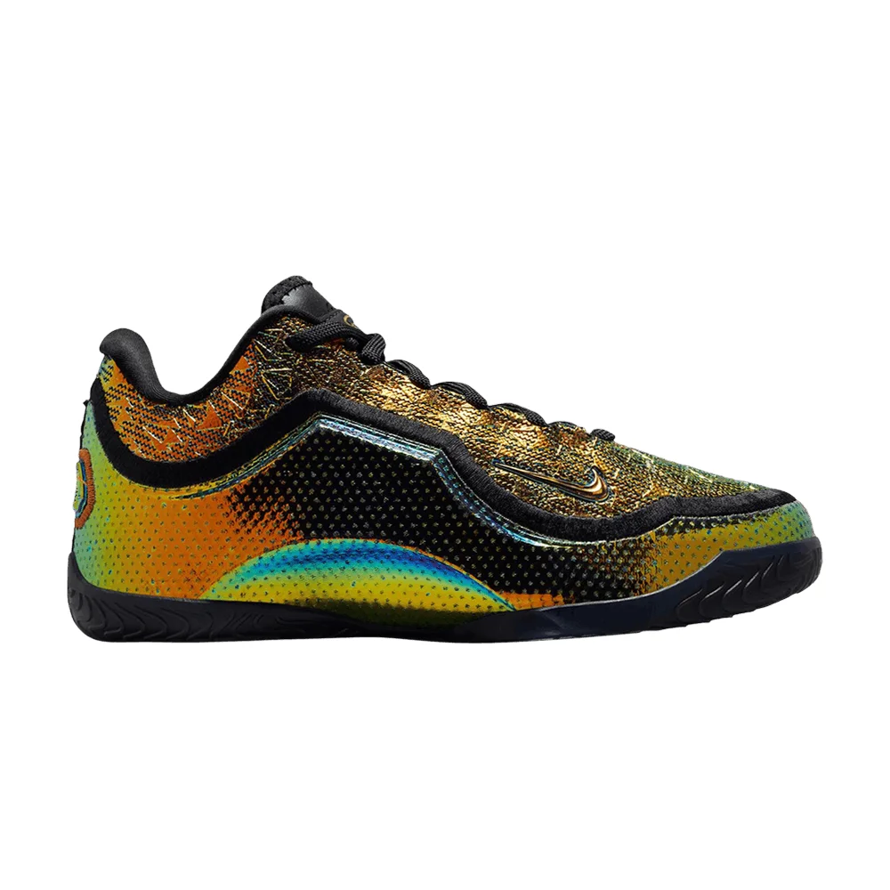 The Nike LeBron 23 EP 'Uncharted' celebrates a career milestone, as LeBron James is the first player in NBA history to score 40,000 regular-season points. Fit for a king, the engineered Flyknit upper is coated in an iridescent metallic gold finish, highlighted by a repeating diamond pattern that honors the prestige and brilliance of LeBron's singular achievement. Performance benefits include a full-length drop-in ZoomX foam midsole, which pairs with a Crown Containment System for improved stability. A carbon fiber plate offers torsional rigidity. This EP version features an extra-durable rubber outsole designed for play on our door courts.