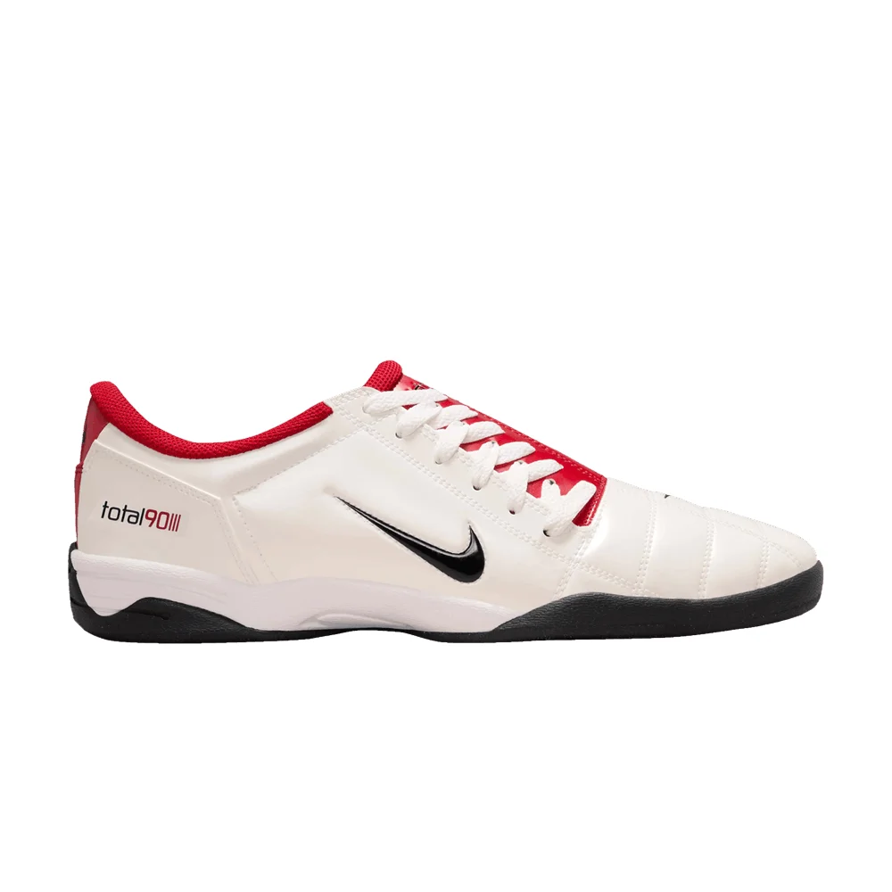The Nike Total 90 3 SP 'White Gym Red' gives the 2000 soccer cleat a modern street-ready makeover. An asymmetrical lacing system secures an ivory leather upper with quilted detailing throughout the forefoot. Gym Red leather paneling covers the vamp, heel, and medial side panel, featuring oversized '90' branding. The sneaker rests on a lightweight foam midsole paired with a rubber outsole. UPPER MATERIAL Synthetic