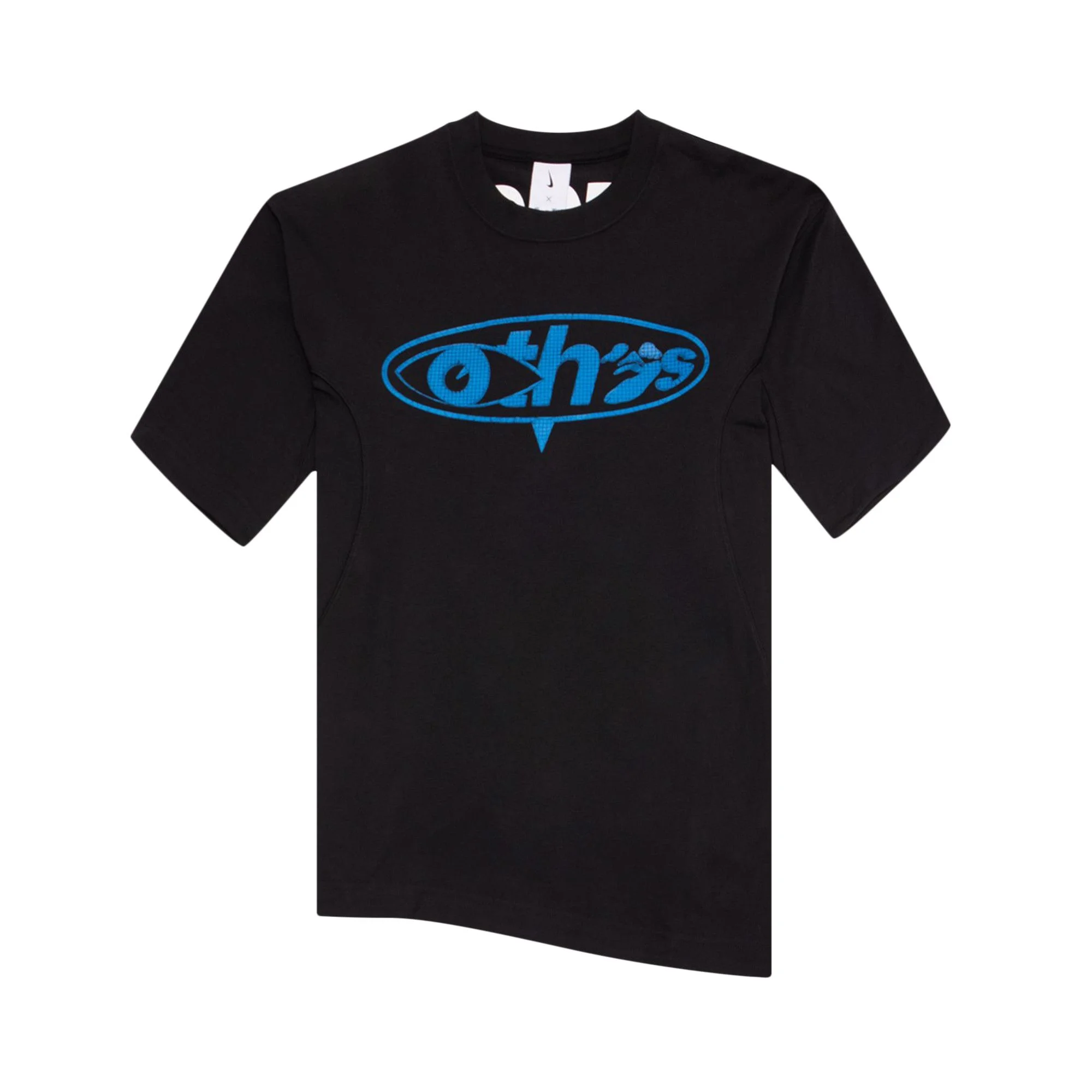 Nike and Off-White work together on this T-shirt for the FW22 season. Printed with an abstract logo across the chest and dual branding in blue on the rear, the crewneck tee is rendered in black.