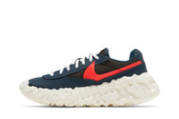 The Nike Overbreak SP ‘Armory Navy’ delivers a retro-inspired silhouette that blends heritage running style with experimental avant-garde tooling. The paneled textile upper is rendered in contrasting navy and brown hues with an oversized tumbled leather swoosh in scarlet. Additional branding elements include a Nike wordmark on the back tab and a woven Nike Overbreak tag atop the tongue. The sneaker is mounted on a distinctive OverReact midsole in an off-white finish. UPPER MATERIAL Synthetic