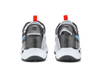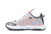 The PG 4 'Football Grey' applies a charcoal plaid pattern to the zippered shroud that covers the upper of Paul George’s signature shoe. The unique design is complemented by a white mesh overlay on the medial side and a red webbing pull loop atop the tongue. A Nike Swoosh in Laser Blue adds an additional pop of color. The low-top rides on a white foam midsole, reinforced by a black rubber outsole with a circular traction pattern for multidirectional grip on the hardwood. UPPER MATERIAL Mesh