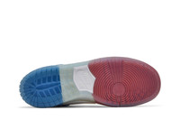 This colorway was released just in time both for July 4, 2016, and for the 2016 Euro football championship. The SB Dunk High 'Trico' comes dressed in a dual-fabric upper with white leather in the center and suede on the red perforated toe box and blue heel. The high top also sports a translucent midsole, a padded tongue and collar, thick laces for a secure fit, and an oversized gold Swoosh on the sides.