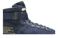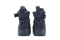 The SF Air Force 1 Mid emerges with a military aesthetic that’s inspired by Nike’s range of special field boot offerings, featuring a suede formation on the toe and quarter panel and a ballistic nylon application on the ankle and heel. An adjustable nylon ankle strap is included for support. The Obsidian and black colorway is accented by gold on the eyelets and the text near the heel.