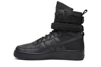 The Special Field Air Force 1 is an update to the classic Air Force 1 silhouette. Featuring a black tumbled leather upper with a ballistic nylon heel and high-rise collar, other details include dual adjustable ankle straps, a gusseted tongue, a secret pocket, and an all-black Air Force 1 sole.