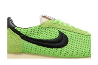 The Stussy x Nike LD 1000 SP 'Action Green' is built with lime green mesh construction, featuring tonal suede overlays and a black embroidered Swoosh. A co-branded woven tag adorns the exposed foam tongue, while a Stussy wordmark graces the black leather back tab. Lightweight cushioning is provided by an off-white foam midsole, supported underfoot by a black waffle-traction rubber outsole. UPPER MATERIAL Mesh