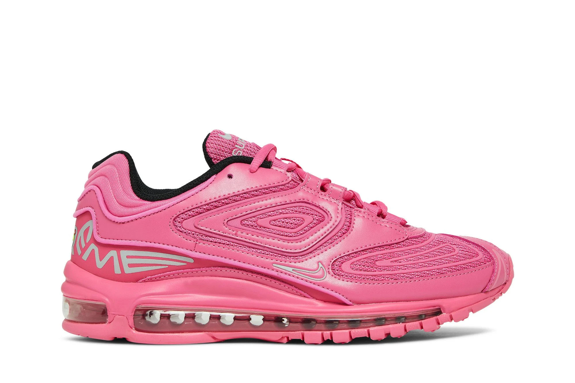 The Supreme x Nike Air Max 98 TL SP ‘Pinksicle’ presents a monochromatic colorway of the retro ‘90s running shoe made exclusively for the pioneering New York skate brand. A vibrant shade of pink suffuses the modified upper, crafted from breathable mesh with tonal synthetic leather overlays and molded TPU detailing. 3M accents add a hi-vis element to the laces, lateral-side Swoosh, and the stylized Supreme wordmark that wraps around the heel. Anchoring the sneaker is a pink-tinged full-length Max Air unit, reinforced underfoot by a color-matched rubber outsole. UPPER MATERIAL Leather