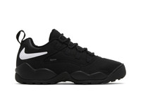 The Supreme x Nike Darwin Low SB 'Black' is taken from a collaborative four-piece pack that brings back a '90s basketball shoe designed by Tinker Hatfield. A reverse grey leather Swoosh decorates the black canvas upper, secured with a speed lacing system and equipped with a low-cut padded collar. A woven patch atop the tongue displays dual branding, while a discreet Supreme tag adorns the lateral quarter panel. Lightweight cushioning is provided by a matching black polyurethane midsole, supported by an extra-durable rubber outsole designed for play on outdoor courts. UPPER MATERIAL Canvas
