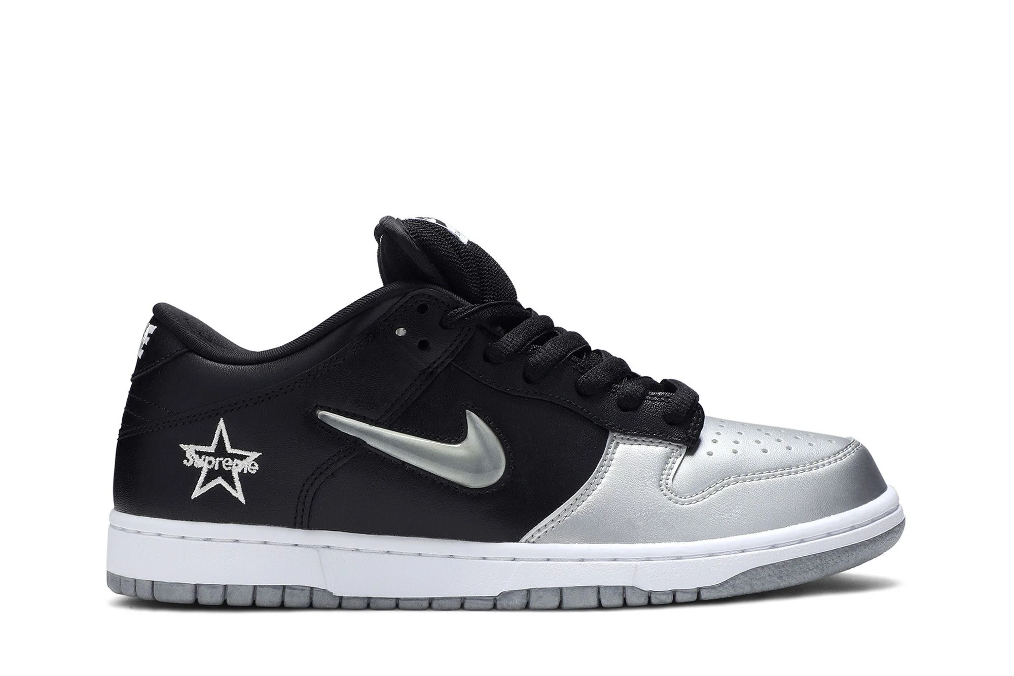 x Supreme SB Dunk Low OG QS "Jewel Swoosh Silver/Black" sneakers