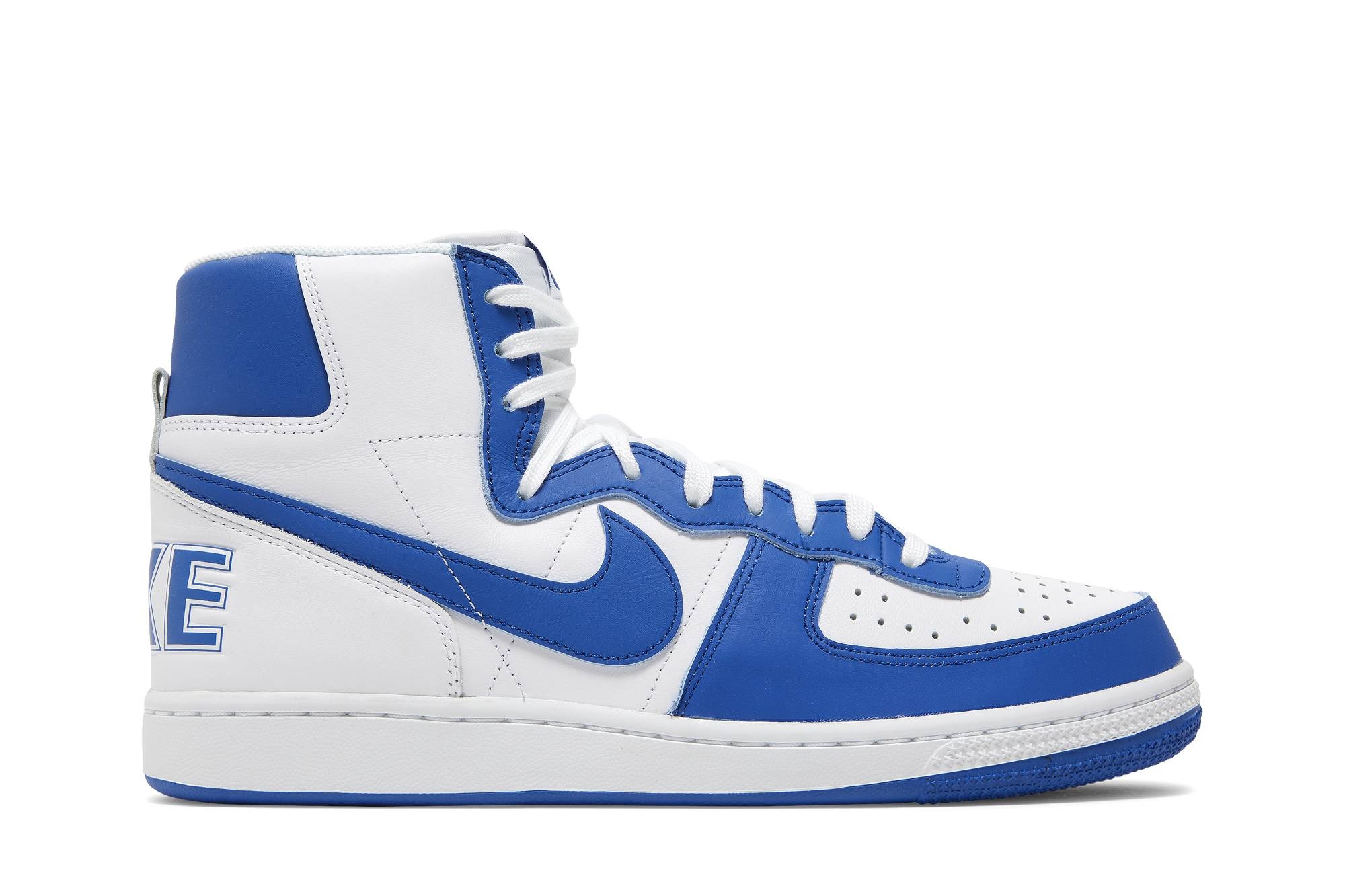 The Nike Terminator High ‘Game Royal’ spotlights a Kentucky-inspired palette that nods to Nike’s original ‘Be True to Your School’ series from 1985. The archival high-top utilizes a smooth leather upper, featuring a pristine white base with contrasting royal blue accents. They include the forefoot overlay, signature Swoosh, and the enlarged Nike wordmark that adorns the back heel. Anchoring the sneaker is traditional cupsole tooling, highlighted by white sidewalls and a blue herringbone rubber outsole. UPPER MATERIAL Leather
