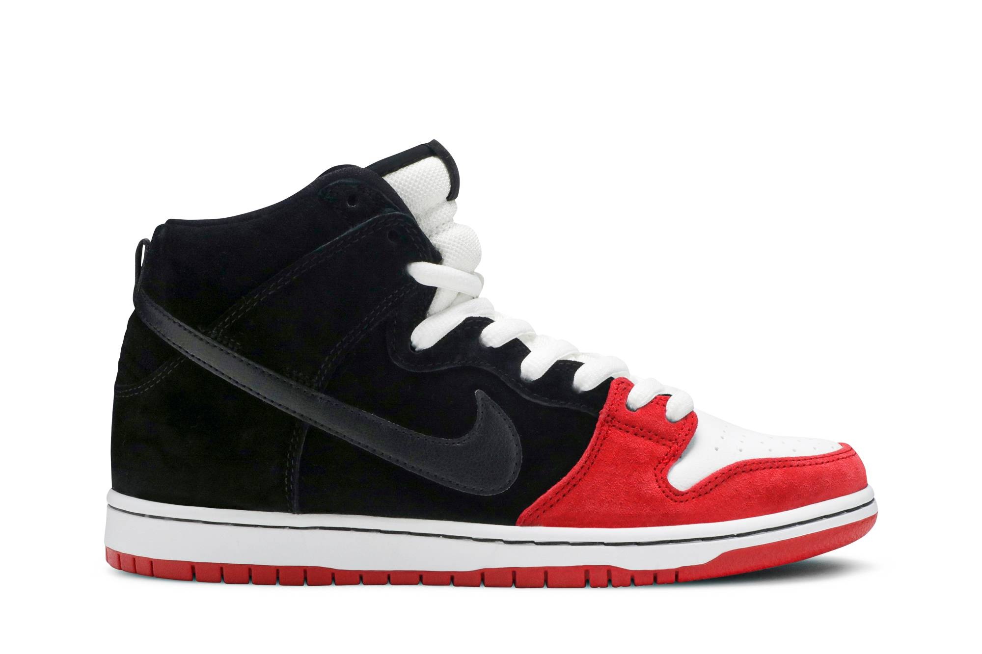 In a union between the brand’s basketball and skateboarding identities, Nike collaborated with Chicago skateshop Uprise to release this ‘Bred’ edition of the Dunk High Premium SB in 2013. The Bulls-inspired colorway features a leather and suede upper with a ‘four star’ emblem on the tongue—a reference to the city’s flag—while the custom insole is printed with a black-and-white photo.
