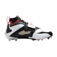 The Nike Vapor Edge DT '93 TD '49ers' takes inspiration from the iconic OG colorway of Deion Sanders' Air Diamond Turf. Built with layered synthetic leather in contrasting white and black tones, the upper features a black knit cuff and crimson accents on the pull tab and collar lining. A matching red Swoosh is embossed on the signature midfoot strap. Underfoot, the outsole plate utilizes wide stud placement for quick cuts on the turf. UPPER MATERIAL Leather
