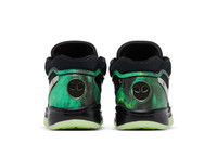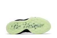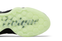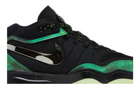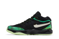 The Victor Wembanyama x Nike Air Zoom GT Hustle 2 'Alien' is built with black mesh and textile, accented with a chrome-plated Swoosh, matching the alien motif that adorns the back heel. The extraterrestrial theme continues via a green nebula graphic that covers synthetic leather overlays along the forefoot, heel and collar. Lightweight cushioning is provided by a full-length Zoom Strobel unit and a low-profile Phylon midsole. Underfoot, a glow-in-the-dark translucent rubber outsole reveals a hidden message: 'Be Unique Every Day.' UPPER MATERIAL Textile