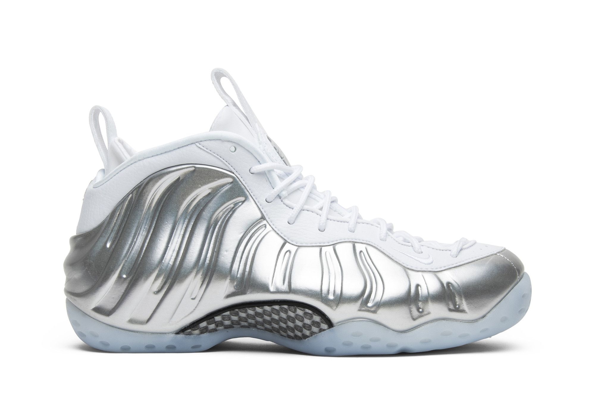 The women’s Nike Air Foamposite One ‘Chrome’ goes full metallic with this January 2018 release. The shoe’s defining feature – its molded Foamposite shell upper – is finished in gleaming chrome that holds a unique iridescent sheen. White leather detailing appears on the collar and eyelets, while the outsole combines translucent rubber with a high-traction section built with a herringbone tread. UPPER MATERIAL Foamposite