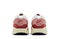 The Nike Women’s Air Max 1 ‘Red Stardust’ dresses the retro running shoe with a breathable white mesh upper, contrasted by synthetic suede overlays in a dusty rose hue. A darker shade of pink distinguishes the molded eyelets, signature Swoosh and wavy synthetic suede mudguard. Nike Air branding embellishes the heel overlay and sockliner. The sneaker sits atop an off-white polyurethane midsole with visible Air-sole cushioning in the heel. A waffle-traction rubber outsole provides grippy traction underfoot. UPPER MATERIAL Suede