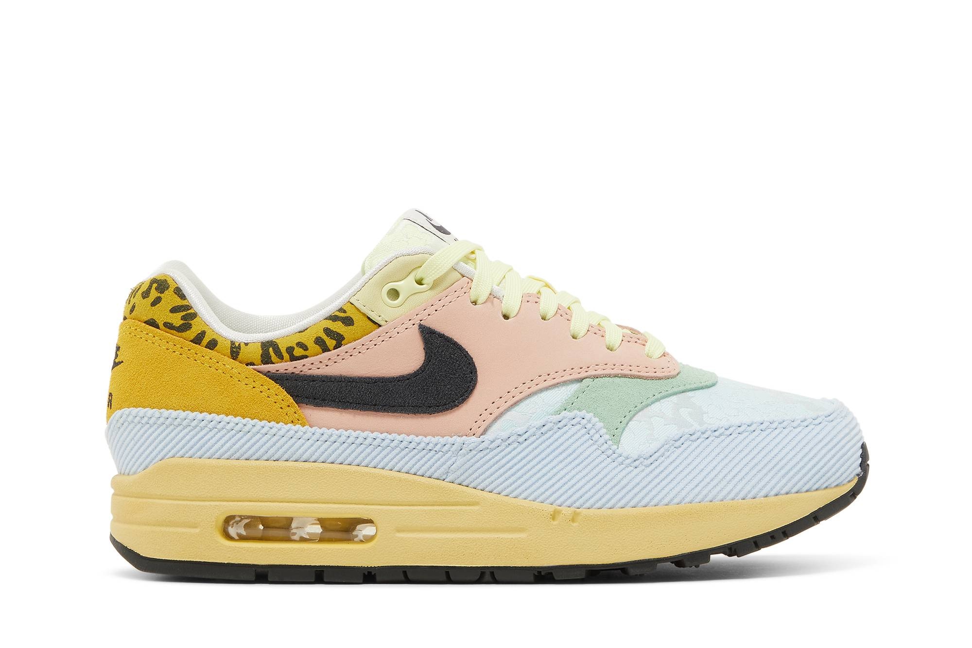 Air Max 1 satin-jacquard and corduroy-trimmed suede sneakers