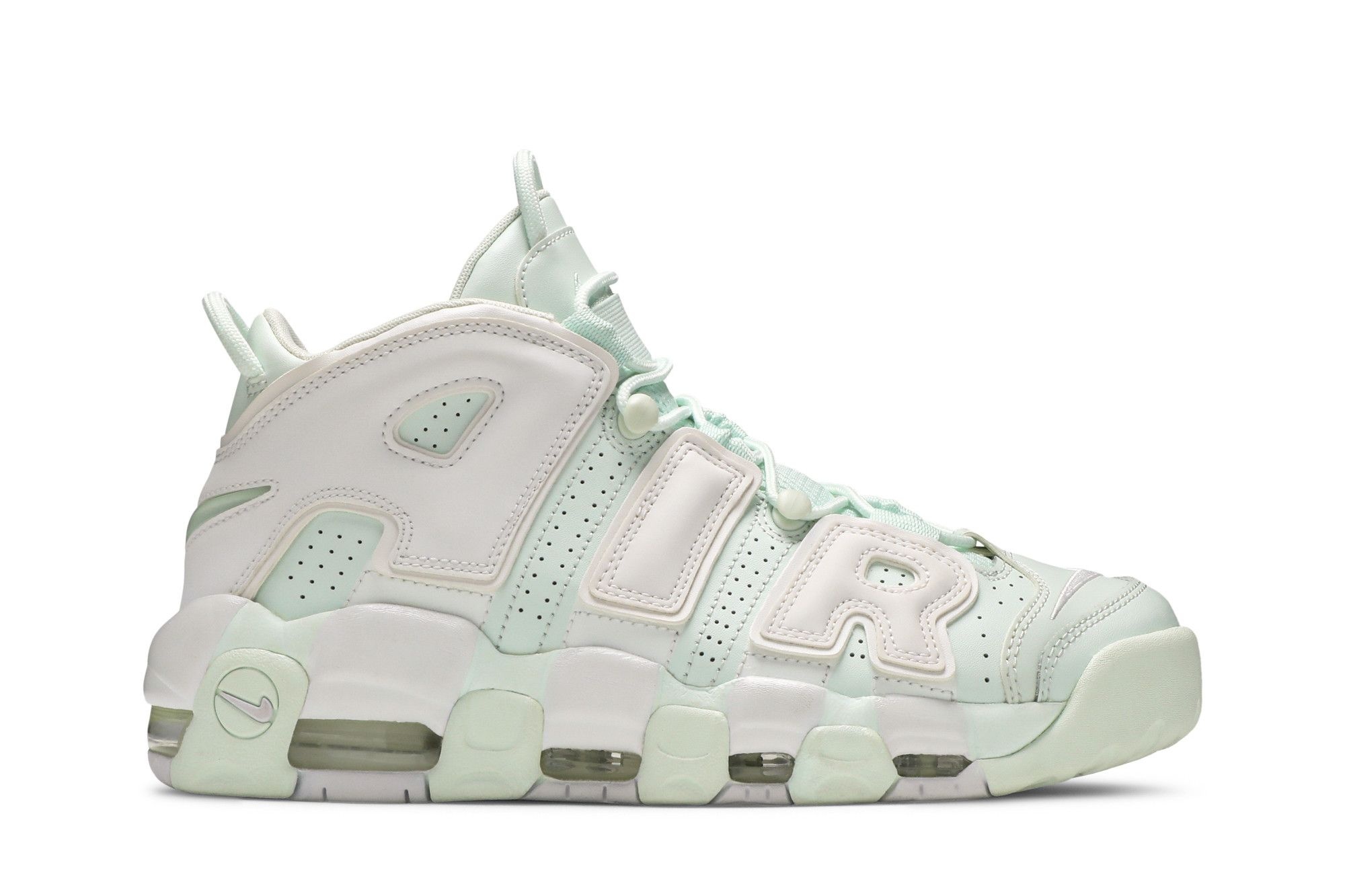 Nike released a classic ladies-only colorway of the Nike Air More Uptempo. The women's Air More Uptempo 'Barely Green' features a Barely Green full-grain leather upper with perforations throughout the shoe for breathability. The sneaker also sports elastic loops at the tongue and heel for an easy fit, classic “AIR” lettering all across the side panel, a full-length Air unit in the midsole, and a durable rubber outsole for superior traction.