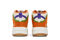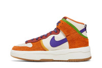 The Nike women’s Dunk High Up ‘Setsubun’ gets its name from an annual Japanese festival that celebrates the first day of spring. The recrafted build is highlighted by an off-white cracked leather upper with orange shaggy suede overlays and a purple leather Swoosh. Unique details include added overlays, an embroidered mini-Swoosh, and a demon-mask graphic on the lateral heel. Custom sockliners feature colorful artwork that depicts the Seven Lucky Gods of Japanese mythology. The sneaker rides on an exaggerated foam sole unit, reinforced with gum rubber that rings the perimeter of the outsole. UPPER MATERIAL Leather