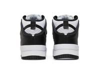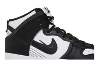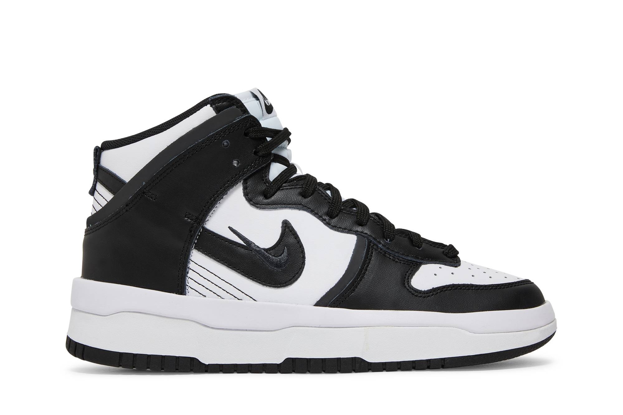 The Nike women’s Dunk High Up ‘White Black’ gives the classic ‘80s silhouette a stylish update, highlighted by exaggerated proportions and refreshed branding elements. The sneaker makes use of a white leather upper with reinforced black overlays at the forefoot and heel. Contrast stitch detailing wraps around the heel, while a mini-Swoosh is embroidered atop a traditional black leather Swoosh. The high-top rests on a raised foam midsole, supported by a cored-out outsole with durable rubber outlining the perimeter. UPPER MATERIAL Leather