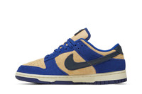 The Nike Women’s Dunk Low LX ‘Blue Suede’ updates the retro silhouette with refreshed materials and sharply contrasting hues. The low-top dons a smooth suede upper, featuring a subtle beige base with royal blue overlays. Black leather detailing is utilized on the signature Swoosh and Nike-branded back tab. A breathable nylon tongue combines with a padded low-cut collar to deliver a comfortable fit. The sneaker is mounted on a durable rubber cupsole, fitted with an interior foam wedge for lightweight cushioning. UPPER MATERIAL Suede