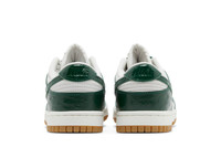 The Nike Women’s Dunk Low LX ‘Gorge Green Ostrich’ showcases a crisp white leather base, contrasted by ostrich-textured overlays in a glossy green finish. Nike branding is stamped in metallic gold lettering on the tongue tag, while a Nike wordmark is debossed on the back tab. The low-top sits on a durable rubber cupsole, featuring white sidewalls and a grippy gum rubber outsole. UPPER MATERIAL Leather