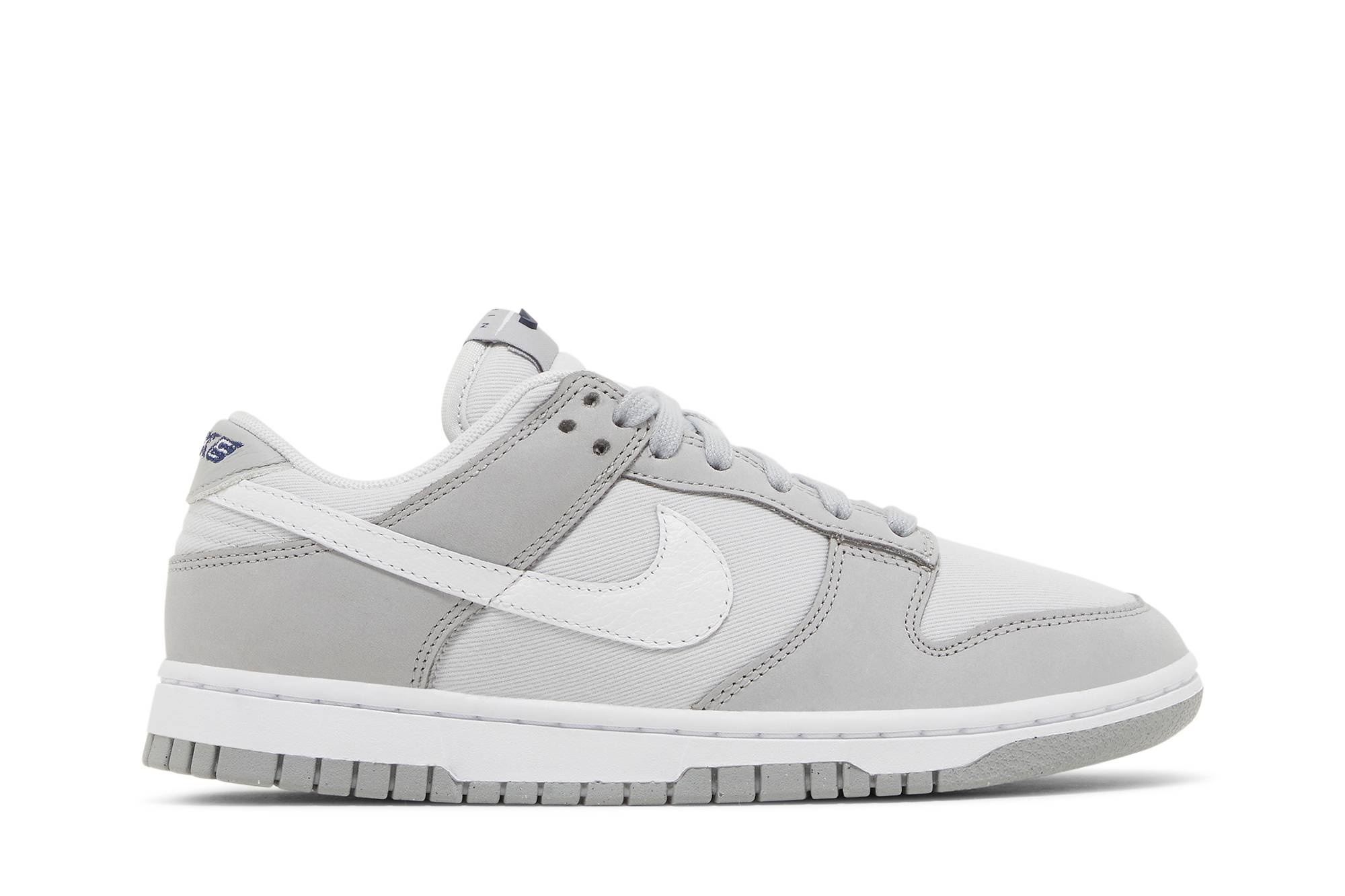 The Nike Women’s Dunk Low LX ‘Light Smoke Grey’ delivers a nuanced colorway in subtle, neutral tones. The retro silhouette is outfitted in a mixed-material upper, featuring a textile base in Photon Dust with light grey leather overlays and a white leather Swoosh. A Nike wordmark is embroidered on the back tab, while a molded Swoosh adorns the tongue tag. The sneaker rests on a rubber cupsole that pairs white sidewalls and a durable grey rubber outsole. UPPER MATERIAL Canvas
