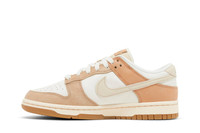 The Nike Women’s Dunk Low SE ‘Australia’ features a leather upper that combines an ivory-colored base with subtly cracked overlays in varying rosy beige tones. In addition to a signature Swoosh in light tan leather, a stylized Swoosh graphic adorns the lateral heel. Additional branding elements include gilded lace dubrae and Nike AU tongue tags. A pale pink hue is applied to the midsole, reinforced underfoot by a grippy gum rubber outsole. UPPER MATERIAL Suede