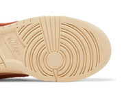 The Nike Women’s Dunk Low ‘Terry Swoosh’ makes over the heritage silhouette with muted tones and cozy materials. A faded red hue is applied to the Nike-branded heel tab and signature Swoosh, both built with fuzzy terry cloth. The plush details stand out against a backdrop that combines a subtle pink leather base with sand-colored suede overlays at the forefoot and heel. A standard woven Nike tag adorns an updated tongue in terry fleece. The low-top rests on a durable rubber cupsole in a solid beige finish. UPPER MATERIAL Leather