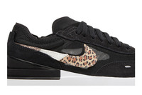 The Nike women’s Waffle One ‘Black Leopard’ adds animal-print accents to an otherwise subdued colorway of the retro-inspired lifestyle runner. The sneaker makes use of a semi-translucent black mesh upper with tonal suede overlays at the forefoot and heel. Cutting across the side panel, a suede leopard-print Swoosh features a middle section covered in an unexpected lizard texture. The angled topline of an oversized TPU heel clip is integrated into a white Phylon midsole, reinforced underfoot by a black waffle-tread rubber outsole. UPPER MATERIAL Mesh