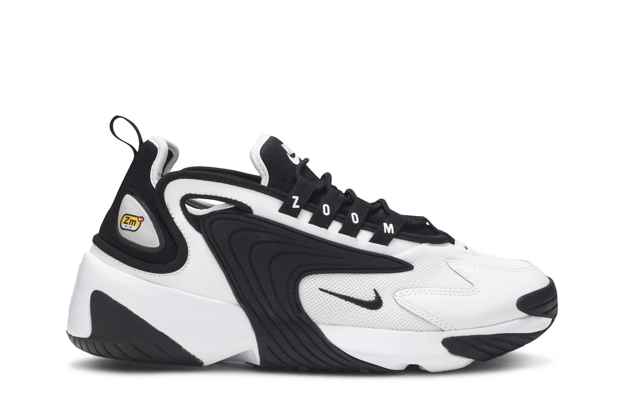 Released in December 2018, the WMNS Nike Zoom 2K 'White Black' recalls the look of running shoes in the early 2000s. Designed with a sock-like, neoprene bootie that's layered with leather and mesh, the women's shoe is grounded by sweeping plastic overlays at the midfoot. The shoe's Nike Zoom Air cushioning is called out on the heel and lateral eyelets, while medial eyelets mark the year of inspiration.
