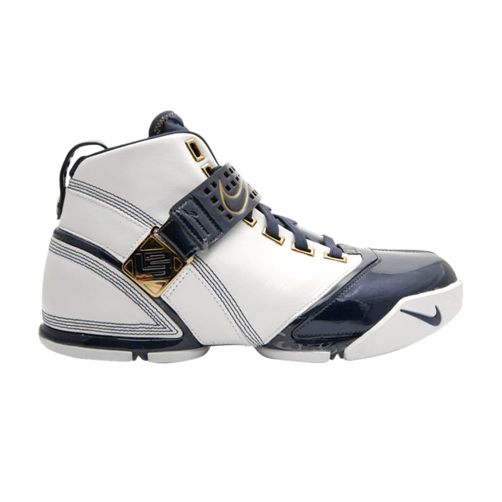 Engineered specifically for King James and designed with looks fit for royalty, the LeBron 5 is a perfect marriage of performance innovation and elevated aesthetics. The silhouette features a regal combination of smooth leather, patent leather, and metallic gold accents. Its Phyposite construction includes a Phylon upper and Foamposite on the lower for enhanced stabilization. Underfoot, full-length Zoom Air cushioning double-stacked at the heel and intersecting outsole grooves deliver optimal energy-return and traction.