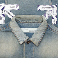 OFF-WHITE Airport Tape Denim Jacket Vintage Wash Multicolor