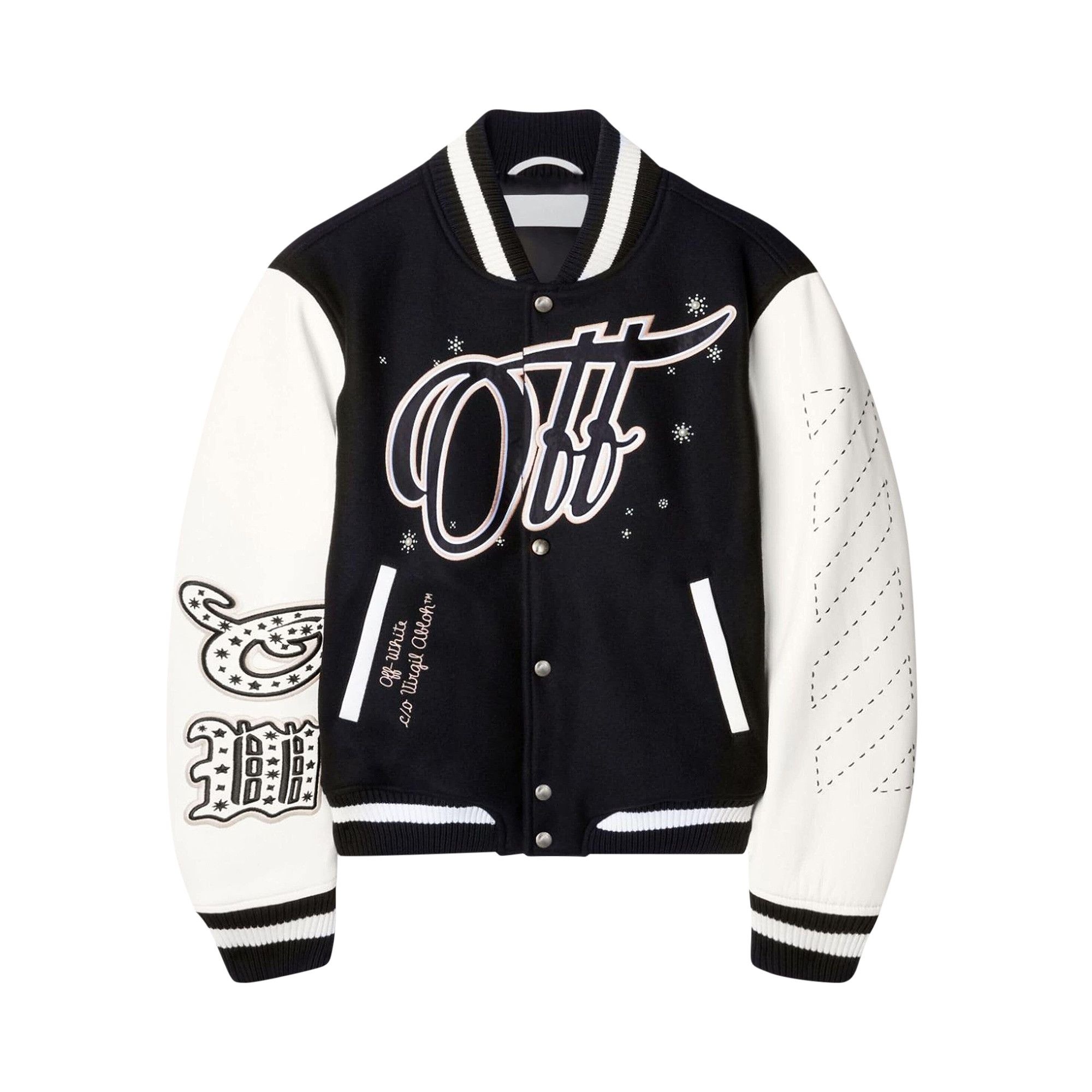 Off-White Embroidered Bling Stars Varsity Jacket 'Black/Off-White'
