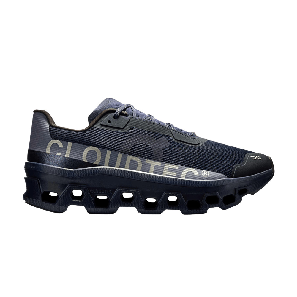 The atmos x On Cloudmonster Void 'Yozakura' takes inspiration from the Japanese tradition of illuminating cherry blossom trees at night. The running shoe utilizes a navy mesh upper with prominent CloudTec branding on the reflective no-sew overlay that adorns the lateral side. Pastel pink accents distinguish the lace loops, while co-branded insoles feature a violet gradient finish that denotes the sky at dusk. The sneaker rides atop a matching navy CloudTec midsole. UPPER MATERIAL Mesh
