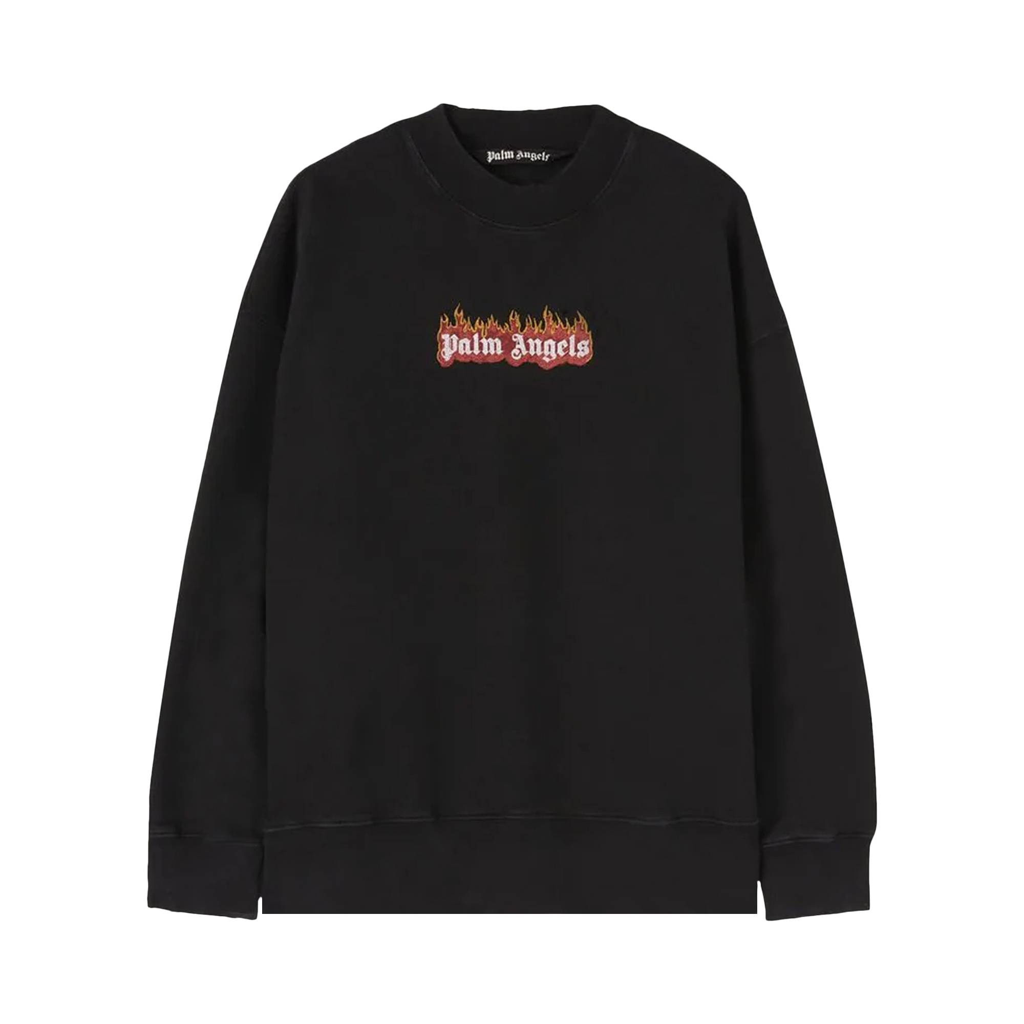 Palm Angels Burning Logo Crewneck 'Black/White'