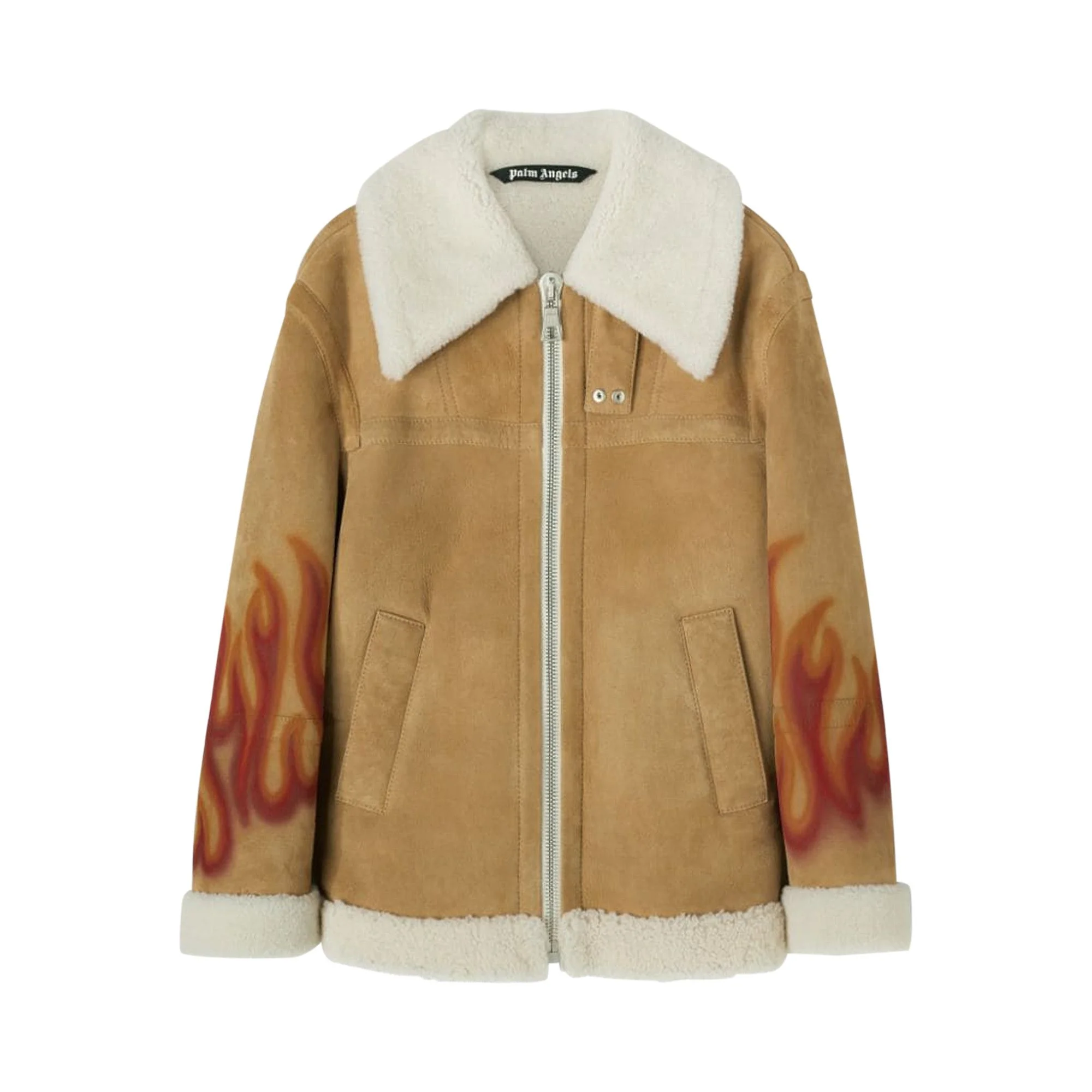 Palm Angels Burning Sherling Jacket 'Sand/Red'